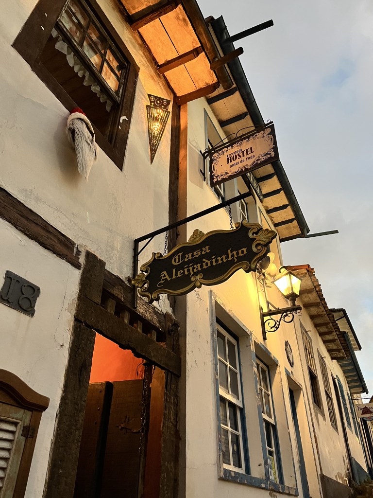 Saímos de lá e fomos direto conhecer a Casa Aleijadinho, um dos pontos altos dessa viagem, não somente pela casa em si, mas pelo o que acontece depois do tour pela casa. Calma que eu já te explico!