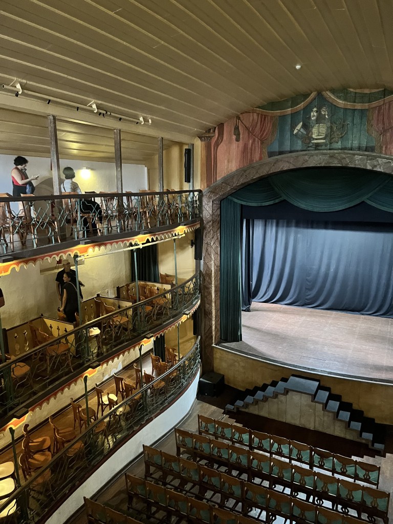 A terceira parada foi no Teatro Municipal – Casa da Ópera, que cobra um valor simbólico de R$5 ou meia entrada para visitação. Ele é um dos principais e mais antigos teatros do Brasil. Localizado no centro histórico da cidade, o teatro foi inaugurado em 1770 e é um importante marco cultural, construído principalmente para atender aos habitantes locais e aos visitantes da cidade durante o auge da mineração.