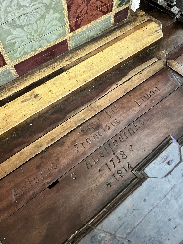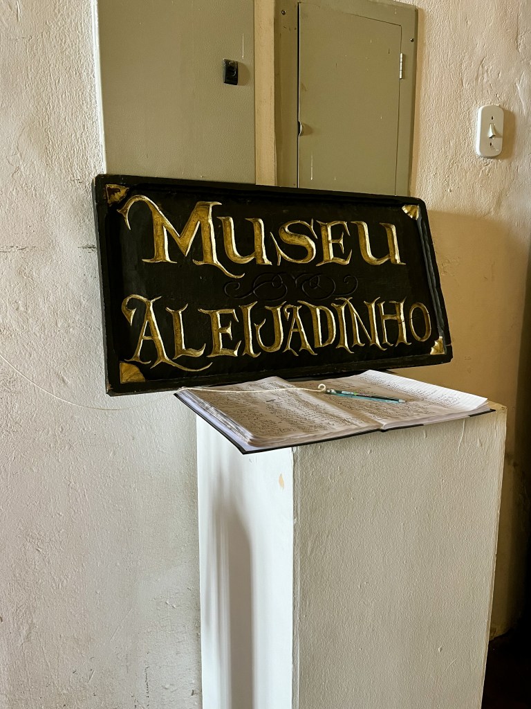No nosso último dia em Ouro Preto, começamos o dia conhecendo a Igreja de São José, onde está localizada o túmulo do Aleijadinho e onde abriga o Museu do Aleijadinho, com obras importantes do artista, como peças de arte sacra, esculturas e imagens. É um museu pequeno, que fica localizado nos fundos da igreja e também no subsolo, mas vale a visita pra conhecer esse ponto turístico importantíssimo na cidade.