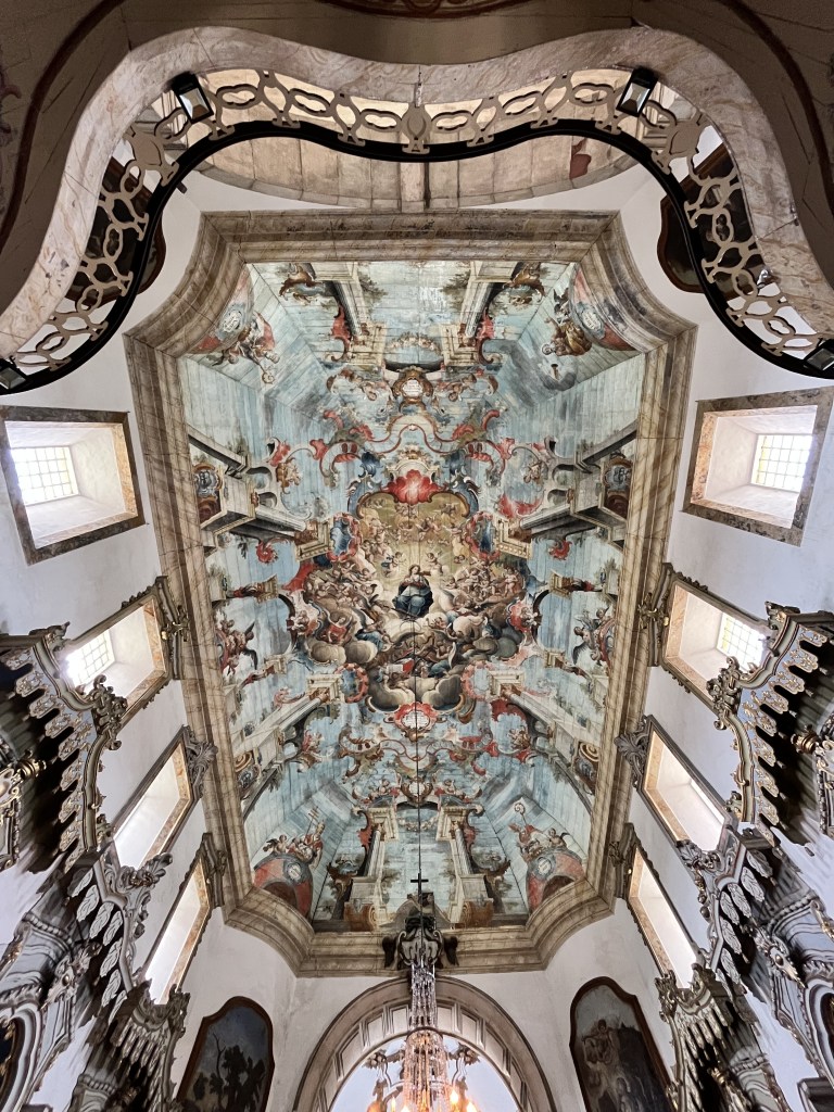 A próxima parada do dia foi na Igreja de São Francisco de Assis, projetada por Aleijadinho, juntamente com seu pai. No forro do teto da igreja, temos obras de Francisco Vieira, um dos pintores que fez parte do movimento barroco aqui no Brasil. É impossível não notar e não se surpreender com a beleza do teto dessa igreja. Todos os detalhes, cores e profundidade chamam atenção mundialmente, considerado um dos mais bonitos aqui no país. Fiquei impressionada!