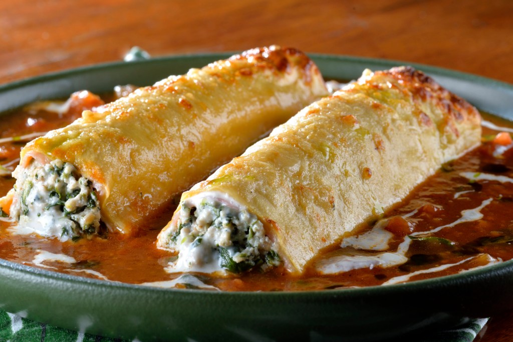 Cannelloni Tradizionale (R$ 87), cannelloni recheado com creme de ricota e espinafre, presunto e mozzarella ao molho de tomate italiano