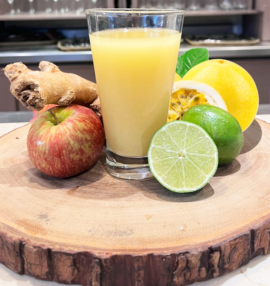 Quem experimenta a kombucha caseira no Noah Gastronomia se impressiona com o seu sabor. Ao ingeri-la, a doçura do maracujá se harmoniza com o toque ácido do limão, enquanto o frescor da maçã e o leve picante do gengibre acrescentam camadas complexas (e saborosas) ao drink. A salsinha, por sua vez, traz um toque herbáceo e refrescante ao paladar. Já a água com pH 9,5, além de contribuir para o sabor equilibrado, é conhecida por seus efeitos alcalinizantes, que ajudam a neutralizar a acidez do organismo e promovem uma hidratação mais eficiente.
