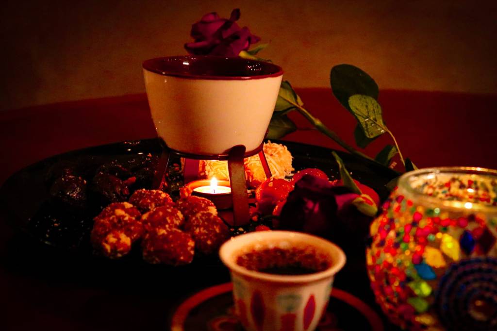 Para os amantes de sobremesas, o fondue doce combina 12 brigadeiros mistos de tâmaras com nozes, bolacha com chocolate, cocada e semolina com canela (3 unidades de cada sabor). O prato é servido com uma deliciosa calda de chocolate aromatizada com água de rosas.