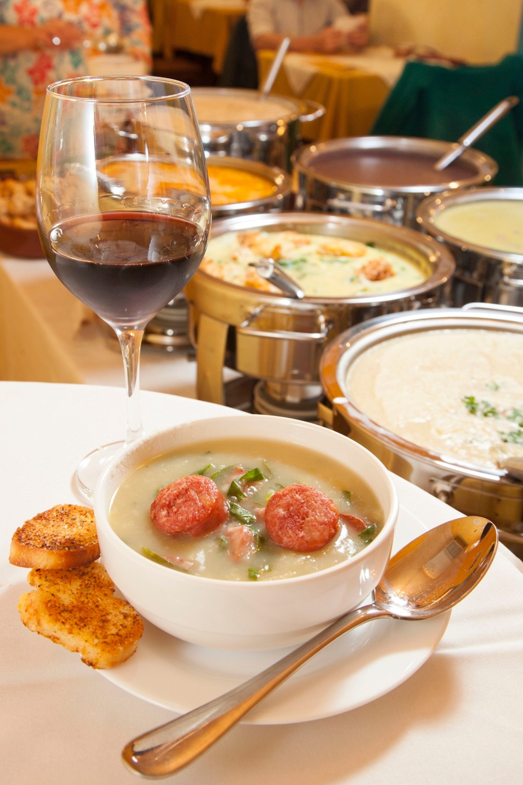 O “Festival de Sopas, Cremes e Caldos” do restaurante Consulado Mineiro da Praça Benedito Calixto, em Pinheiros, é uma ótima opção para quem deseja “esquentar o inverno”. Em sua oitava edição, acontece às quintas, sextas-feiras e sábados, das 19h às 23h. Os caldos, cremes e sopas são os seguintes: creme de mandioca com carne de sol desfiada, canja de galinha, caldo verde, bambá de couve, canjiquinha com costelinha, caldo de feijão e canjica de milho com amendoim (sobremesa). Acompanhamentos: torresmo, torrada, pães, alho torrado, cebolinha e queijo ralado. Tudo à vontade. O preço é de R$ 75,00 por pessoa. Crianças até seis anos não pagam e de sete a 12 pagam R$ 37,50.